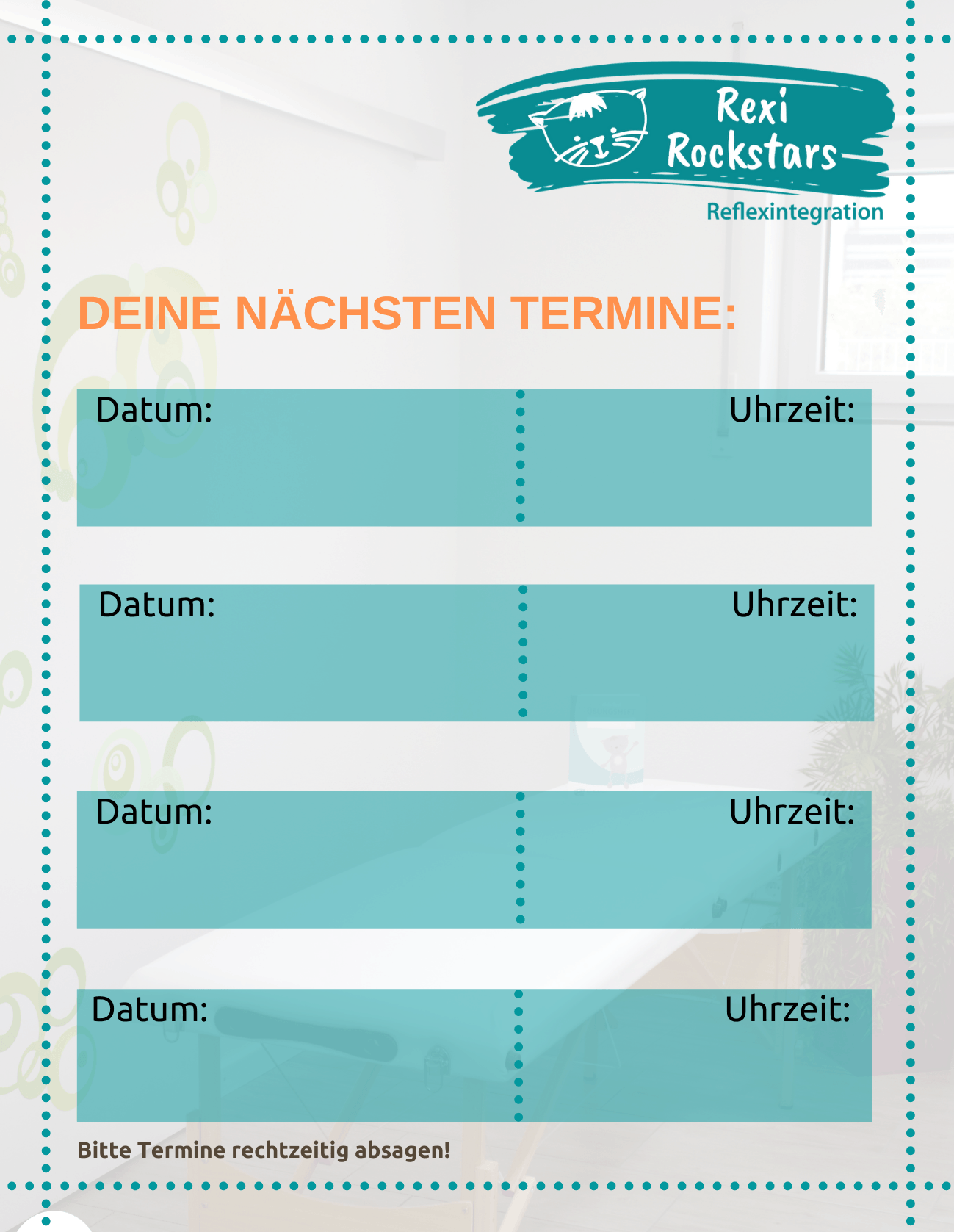 Wie bei allen meinen angebotenen Leistungen, ist auch die Reflexintegration keine Heilbehandlung und soll diese nicht ersetzen.